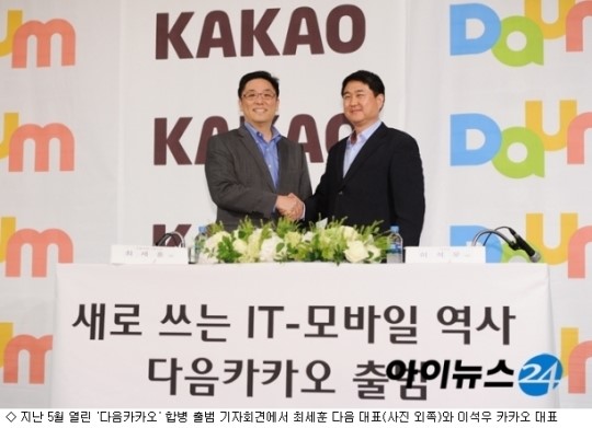 µÎ ȸ»çÀÇ ÇÕº´À¸·Î ȸ»ç´Â ³×À̹öÀÇ °·ÂÇÑ °æÀïÀÚ·Î ºÎ»óÇÏÁö¸¸ Á¤ÀÛ Á÷¿øµéÀº °©ÀÛ½º·± º¯½Å¿¡ ´çȤ°¨À» °¨ÃßÁö ¸øÇÏ´Â ºÐÀ§±â´Ù. ¼ö³â°£ £§Á¤Ã¼£§¸¦ °Þ¾î ¿Â ´ÙÀ½ Á÷¿øµéÀº ¹°·Ð īī¿À Á÷¿øµé »çÀÌ¿¡¼µµ º¯½ÅÀ» ¹Þ¾Æµé¿©¾ß ÇÑ´Ù´Â »ç½Ç°ú ¾ÕÀ¸·ÎÀÇ ÀÚ½ÅÀÇ À§Ä¡´Â ¾î¶»°Ô µÉ °ÍÀÎÁö¸¦ °ÆÁ¤ÇÏ´Â ¸ñ¼Ò¸®°¡ ¿¬½Å ÅÍÁ® ³ª¿À°í ÀÖ´Ù.