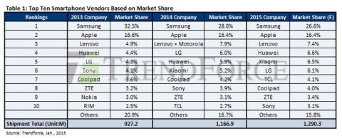 Æ®·»µåÆ÷½º´Â ¿ÃÇØ ½º¸¶Æ®Æù ½ÃÀå Á¡À¯À²À» »ï¼º 26.6%, ¾ÖÇà 16.4%, ·¹³ë¹ö 7.4%, È¿þÀÌ 6.6%, »þ¿À¹Ì 6.5%%, LG 6.1%ÀÇ ¼øÀÇ·Î ³»´ÙºÃ´Ù.