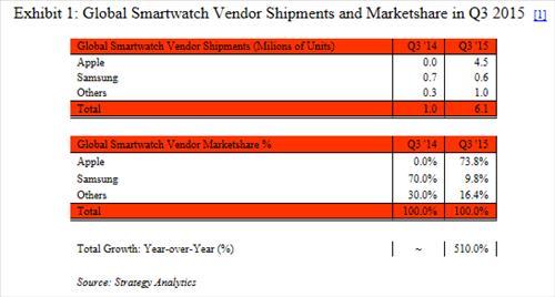 3ºÐ±â ±Û·Î¹ú ½º¸¶Æ®¿öÄ¡ ½ÃÀå ±Ô¸ð´Â ÃÑ 610¸¸´ë·Î À۳⠰°Àº ±â°£(¾à 100¸¸´ë)º¸´Ù ¹«·Á 510% Áõ°¡Çß´Ù. È­¿þÀÌ¿Í ·¹³ë¹ö µî ³ª¸ÓÁö Á¦Á¶»çµéÀÇ ÆÇ¸Å·®Àº ´Ù ÇÕÇØµµ 100¸¸´ë(16.4%)¿¡ ±×ÃÆ´Ù.