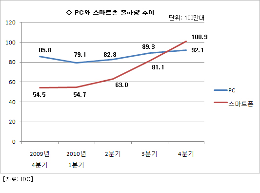 ÃÖ±Ù 2³â °£ ½º¸¶Æ®Æù ½ÃÀåÀº 3¹è °¡±îÀÌ ´Ã¾î³­ ¹Ý¸é PC ½ÃÀåÀº 45% ¼ºÀå¿¡ ¸Ó¹°·¶´Ù. °á±¹ µÚ´Ê°Ô Ãâ¹ßÇÑ ½º¸¶Æ®ÆùÀÌ 1¾ï´ë °íÁö¸¦ ¸ÕÀú ¹âÀ¸¸é¼­ ÁÖµÈ Ç÷§ÆûÀ¸·Î ¶°¿Ã¶ú´Ù.