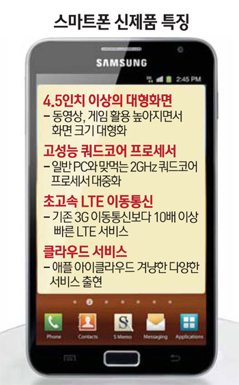¿ÃÇØ ÀÌÈÄ ½º¸¶Æ®Æù ½ÃÀåÀÇ °¡Àå Å« Ư¡Àº ¢Ë4.5ÀÎÄ¡ ÀÌ»óÀÇ ´ëÇü È¸é ¢Ë°í¼º´É ÄõµåÄÚ¾î ÇÁ·Î¼¼¼ ¢ËÃʰí¼Ó LTE À̵¿Åë½ÅÀ¸·Î ¿ä¾àµÈ´Ù. ´õ¿í Ä¿Áø ȸé°ú ÇÑÃþ »¡¶óÁø ÇÁ·Î¼¼¼°¡ žÀçµÇ°í À̸¦ Áö¿øÇÏ´Â LTE ¼ºñ½º°¡ ´ëÁßȵǴ ¿ø³âÀÌ µÉ °ÍÀ̶ó´Â ¾ê±â´Ù. ¿©±â¿¡´Ù ¾Õ¼ ½º¸¶Æ®ÆùÀ» ±¸ÀÔÇß´ø »ç¿ëÀÚµéÀÇ ¾àÁ¤±â°£µµ ´ë°Å ¸¸·áµÉ ¿¹Á¤ÀÌ¾î¼ ½ÅÁ¦Ç°À» ¾Õ¼¼¿î ÁÖ¿ä ¾÷üÀÇ ÁÖµµ±Ç °æÀïÀº ÇÑÃþ ´Þ¾Æ¿À¸¦ °ÍÀ¸·Î Àü¸ÁµÈ´Ù.