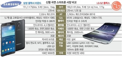 ÈÁú ¸é¿¡ À־ »ï¼º Á¦Ç°ÀÌ ¾Õ¼±´Ù. ¾Õ¼ Ãâ½ÃµÈ °¶·°½Ã ¶ó¿îµå´Â 5.7ÀÎÄ¡(144.3§®) Ç®HD(1920x1080) ½´ÆÛ AMOLED µð½ºÇ÷¹À̸¦ äÅÃÇß´Ù. ÀÎÄ¡´ç Çȼ¿¼ö(ppi)°¡ 386°³·Î ÇØ»óµµµµ ÈÁúµµ ¼öÁرÞÀÌ´Ù. ÇÏÁö¸¸ LGÀüÀÚÀÇ GÇ÷º½º´Â 6ÀÎÄ¡ °íÈÁú(HD¡¤°¡·Î 1280x¼¼·Î 720) ȸ鿡 °î¸é ÇÃ¶ó½ºÆ½ OLED µð½ºÇ÷¹À̸¦ äÅÃÇß´Ù. ÈÁú°ú ÇØ»óµµ¸¦ °áÁ¤ÇÏ´Â ÀÎÄ¡´ç Çȼ¿¼ö(ppi)´Â 245ppi ¼öÁØÀÌ´Ù. °æÀï»ç ¸ðµ¨º¸´Ù ÈÁúÀÌ ¶³¾îÁö´Â Á¡¿¡ ´ëÇØ LG °ü°èÀÚ´Â ¡°µð½ºÇ÷¹ÀÌ µîÀ» °î¸éÀ¸·Î ¸¸µé·Á¸é ¼öÀ²(ÅõÀÔ·® ´ëºñ ¿Ï¼ºÇ° ºñÀ²)ÀÌ ¶³¾îÁö°í ½Ã°£µµ ¸¹ÀÌ °É·Á ºñ¿ëÀÌ 20~30%°¡·® ´õ ¹ß»ýÇÑ´Ù¡±¸é¼ ¡°°¡°Ý°æÀï·Â°ú ¿øÈ°ÇÑ ½ÃÀå °ø±Þ µîÀ» °í·ÁÇØ HD±ÞÀ» ¼±ÅÃÇÑ °ÍÀÏ »Ó ±â¼ú·Â Â÷ÀÌ´Â ¾Æ´Ï´Ù¡±¶ó°í ÁÖÀåÇß´Ù.