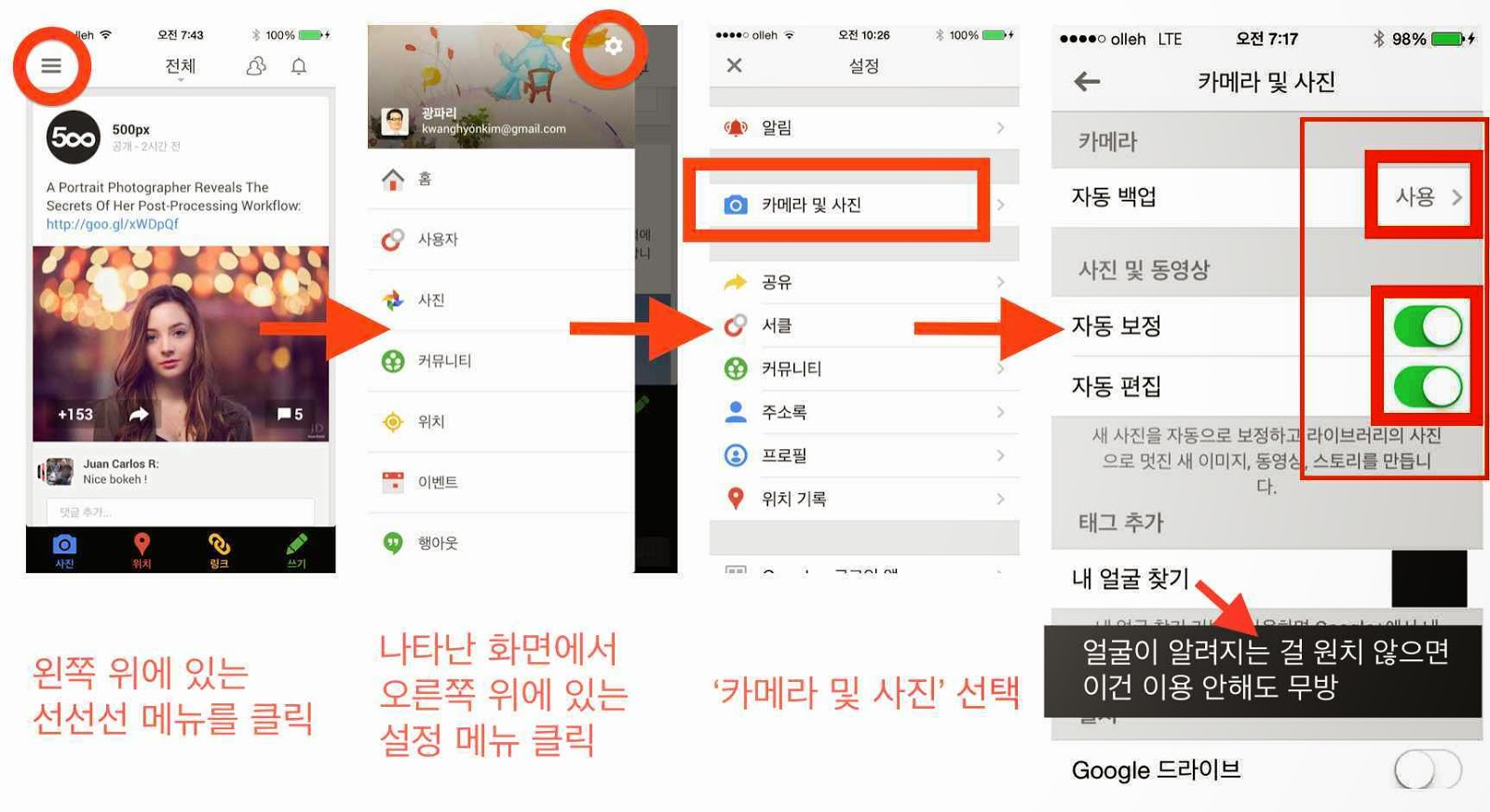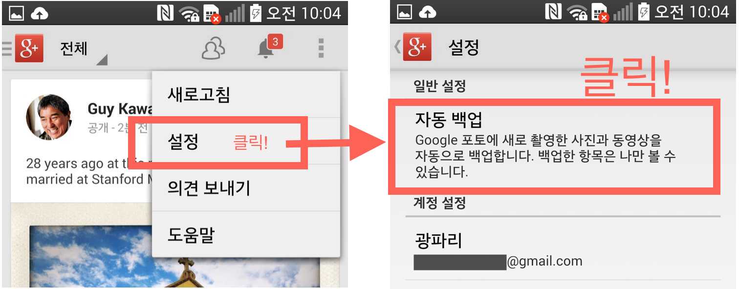 ÆùÀ̳ª ÅÂºí¸´¿¡ ±¸±Û+ ¾ÛÀ» ±ñ ´ÙÀ½ ±¸±Û °èÁ¤À¸·Î ·Î±×ÀÎ ÇÏ¸é ±¸±Û+ »çÀÌÆ®°¡ ¶á´Ù. (óÀ½¿£ ¾Æ¹«°Íµµ ³ªÅ¸³ªÁö ¾Ê´Â´Ù. ½Å°æ¾µ °Í ¾ø´Ù.) »çÁø ÀÚµ¿ ¹é¾÷ ¼³Á¤À» ÇÒ Â÷·Ê. ¾Èµå·ÎÀ̵åÆùÀº ¿À¸¥ÂÊ À§ ¡®Á¡Á¡Á¡¡¯À» ´©¸£¸é µÈ´Ù. ¾ÆÀÌÆùÀº ¿ÞÂÊ À§ ¡®¼±¼±¼±£§ ¹öưÀ» ´­·¯¼­ ³ªÅ¸³ª´Â È­¸é¿¡¼­ ¿À¸¥ÂÊ À§ ¼³Á¤ ´©¸£°í ¡®Ä«¸Þ¶ó ¹× »çÁø£§À» ¼±ÅÃ.