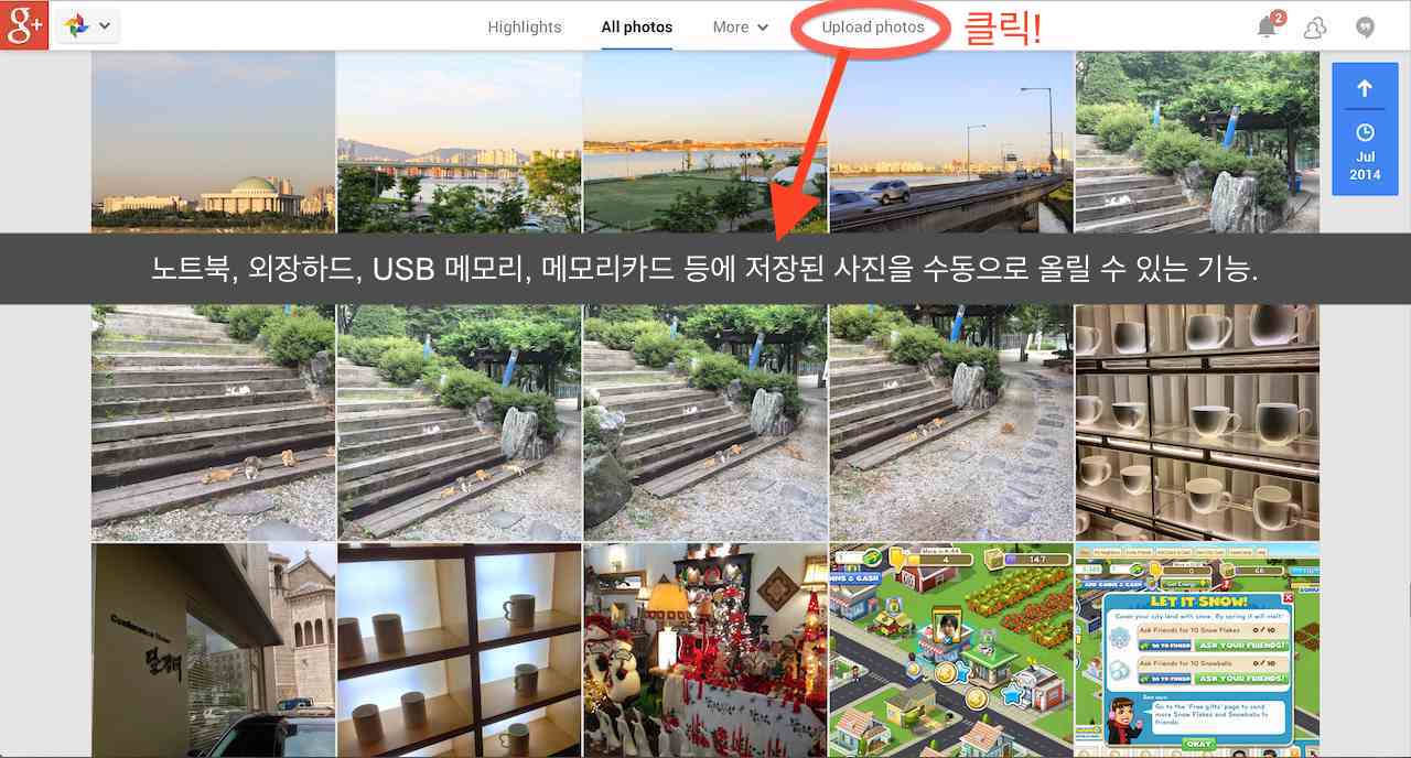 ±¸±Û+ »çÁø »çÀÌÆ®¿¡ Á¢¼ÓÇÏ¸é »ó´Ü ¸Þ´º ¿À¸¥ÂÊ¿¡ ¡®Upload photos¡¯ ¸Þ´º°¡ ÀÖ´Ù. »çÁøÀ» ¼öµ¿À¸·Î ¾÷·Îµå ÇÒ ¼ö ÀÖ´Â ¸Þ´º´Ù. ÀÌ°É Å¬¸¯ÇÏ°í ³ª¼­ ´ÙÀ½ ÀýÂ÷¸¦ °ÅÄ£´Ù. 1) ¾÷·Îµå ÇÒ »çÁø ¼±ÅÃ, 2) ¾÷·Îµå, 3) ¾Ù¹ü Á¦¸ñ ÀÔ·Â, 4) ¿Ï·á. (°Ë»ö ÅëÇØ È®ÀÎ). ¾÷·ÎµåÇÒ »çÁøÀÌ ¸¹À» ¶© °¡´ÉÇÏ¸é ¿ÍÀÌÆÄÀÌ ¼Óµµ°¡ ºü¸¥ °÷¿¡¼­ ÇÏ´Â °Ô ÁÁ´Ù.