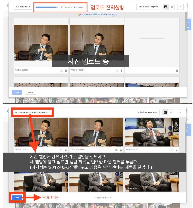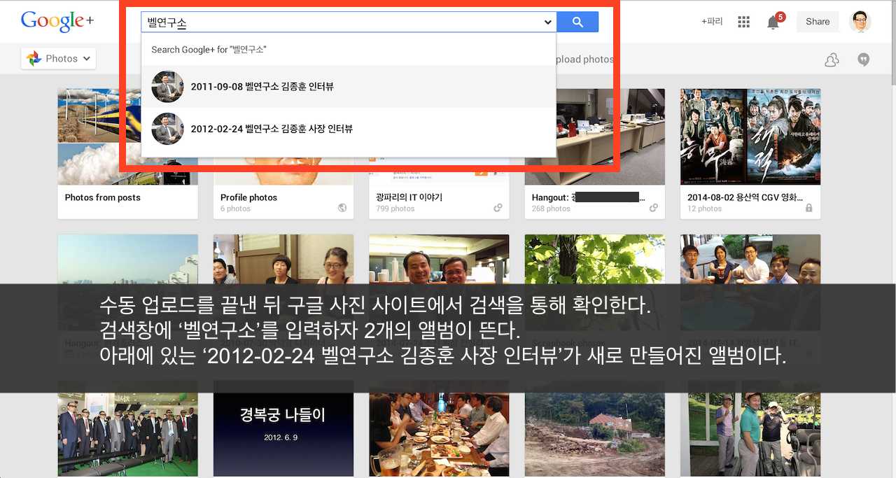 ±¸±Û »çÁø ¼­ºñ½º¿Í °ü·ÃÇØ ÀÚµ¿ ¹é¾÷°ú ¾Ù¹ü ¸¸µé±â¿¡ °üÇØ ¼³¸íÇß´Ù. ÀÚµ¿ ¹é¾÷Àº ÆùÀ¸·Î ÂïÀº »çÁøÀ» ±¸±Û »çÁø Ŭ¶ó¿ìµå¿¡ ÀÚµ¿À¸·Î ¹é¾÷ÇØÁÖ´Â ±â´ÉÀ̰í, ¾Ù¹ü ¸¸µé±â´Â À̺¥Æ®º°·Î »çÁøÀ» ÇÑ ¹Ù±¸´Ï(¾Ù¹ü, Æú´õ)¿¡ ´ã´Â ±â´ÉÀÌ´Ù. ¾Ù¹ü ¸¸µé ÁÙ ¾Ë¸é ³ëÆ®ºÏÀ̳ª ¿ÜÀåÇϵ忡 ÀÖ´Â »çÁøµµ ¼öµ¿À¸·Î ¾÷·ÎµåÇØ ¾Ù¹üÀ» ¸¸µé¾î ³õÀ¸¸é ÁÁ´Ù.
