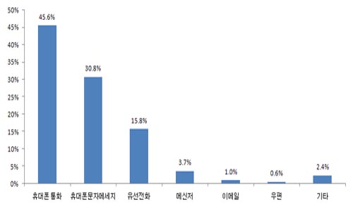 ¿ì¸® ±¹¹ÎµéÀÌ Æò¼Ò °¡Àå ¸¹ÀÌ ÀÌ¿ëÇÏ´Â Åë½Å¼ö´ÜÀº ÈÞ´ëÀüÈ­ ÅëÈ­·Î ³ªÅ¸³µ´Ù. ÈÞ´ëÀüÈ­ ¹®ÀÚ¸Þ¼¼Áö°¡ µÚ¸¦ À̾ú´Âµ¥, ¿©¼ºÀÇ °æ¿ì ¹®ÀÚ¸Þ½ÃÁö ÀÌ¿ë·üÀÌ ÈÞ´ëÆù ÅëÈ­º¸´Ù ³ô°Ô ³ªÅ¸³µ´Ù.