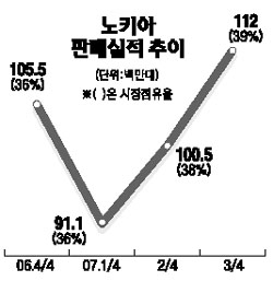 ³ëŰ¾Æ´Â 18ÀÏ ¿Ã 3¤ý4ºÐ±â¿¡ 1¾ï1,170¸¸´ëÀÇ ÈÞ´ëÆùÀ» ÆÇ¸ÅÇÏ¸ç »ç»ó ÃÖ´ë ½ÇÀûÀ» ´Þ¼ºÇß´Ù°í ¹àÇû´Ù. ÀÌ´Â Áö±Ý±îÁö ÃÖ´ë ½ÇÀûÀ̾ú´ø 1¾ï550¸¸´ë(2006³â 4¤ý4ºÐ±â)º¸´Ù 550¸¸´ë¸¦ ´õ ÆÇ¸ÅÇÑ ¼öÄ¡ÀÌ´Ù. ³ëŰ¾Æ´Â Áö³­ 2¤ý4ºÐ±â¿¡µµ 1¾ï50¸¸´ëÀÇ ÈÞ´ëÆùÀ» ÆÇ¸ÅÇßÀ¸¸ç 4¤ý4ºÐ±â°¡ ÈÞ´ëÆù ÃÖ´ë ¼º¼ö±â¶ó´Â °ÍÀ» °í·ÁÇϸé 3ºÐ±â ¿¬¼ÓÀ¸·Î 1¾ï´ë°¡ ³Ñ´Â ÈÞ´ëÆùÀ» ÆÇ¸ÅÇÏ°Ô µÈ´Ù. ³ëŰ¾Æ´Â ¿Ã 1¤ý4ºÐ±â¿¡µµ 9,110¸¸´ëÀÇ ÈÞ´ëÆùÀ» ÆÇ¸ÅÇØ ¿¬°£ ÆÇ¸Å·®Àº 4¾ï2,000¸¸~4¾ï3,000¸¸´ë¿¡ À̸¦ °ÍÀ¸·Î ¿¹»óµÈ´Ù.