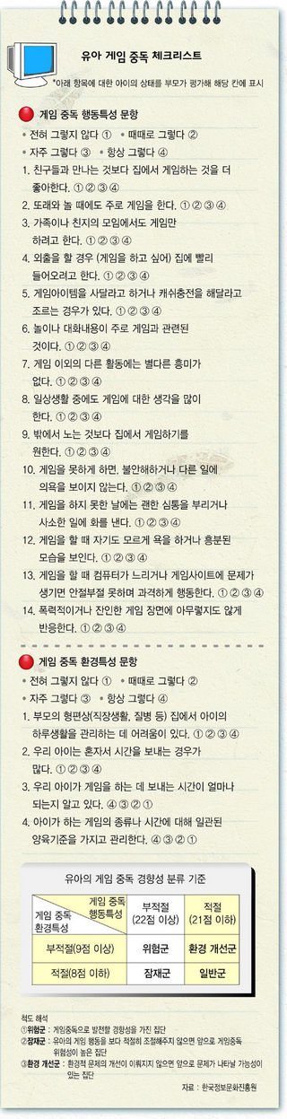 Á¶±â ÀÎÅÍ³Ý ÀÌ¿ëÀÇ ¹®Á¦=¾ÆÀ̵éÀÌ ÀÎÅͳÝÀ» ÅëÇØ ÇÏ´Â °ÍÀº ´ëºÎºÐ °ÔÀÓÀÌ´Ù. ¹®Á¦´Â ÄÄÇ»ÅÍ °ÔÀÓÀÌ ¾ÆÀ̵éÀÌ °æÇèÇÏ´Â ±× ¾î¶² °Íº¸´Ù ÀÚ±ØÀûÀ̶ó´Â Á¡ÀÌ´Ù. ±Ç ¼ÒÀåÀº ¡°¾î¸± ÀûºÎÅÍ ±×·± °ÇÑ Àڱؿ¡ Àͼ÷ÇØÁö´Ù º¸¸é ¾ÆÀ̵éÀº ´Ù¸¥ °÷¿¡¼µµ ±×¸¸ÅÀÇ ÀÚ±ØÀÌ ÁÖ¾îÁöÁö ¾ÊÀ¸¸é ´Ü 5ºÐµµ ÁýÁßÇÏÁö ¸øÇÏ°í »ê¸¸ÇØÁö±â ½±´Ù¡±°í ¸»Çß´Ù. ´õ Å« ¹®Á¦´Â Àڱؿ¡ ´ëÇÑ ³»¼ºÀÌ ±æ·¯Á® ½Ã°£ÀÌ °¥¼ö·Ï ´õ °ÇÑ ÀÚ±ØÀ» ã°Ô µÈ´Ù´Â Á¡ÀÌ´Ù. ±Ç ¼ÒÀåÀº ¡°¸¹Àº ºÎ¸ðµéÀÌ ¾ÆÀ̰¡ Æ÷ÅÐ »çÀÌÆ®ÀÇ ¾î¸°ÀÌ Àü¿ë »çÀÌÆ®¿¡¼ Ç÷¡½Ã °ÔÀÓÀ» Çϰí ÀÖÀ¸¸é ¡®¾êµé °ÔÀÓÀε¥ ¹¹ ¾î¶§¡¯ ÇÏ¸ç ´ë¼ö·ÓÁö ¾Ê°Ô ¿©±â°ï Çϴµ¥, ÀÌ´Â ¸Å¿ì À§ÇèÇÑ »ý°¢¡±À̶ó°í ¸»Çß´Ù. °°Àº °ÔÀÓÀ» °è¼Ó ¹Ýº¹ÇÏ´Ù º¸¸é °ð ½Ã½ÃÇØÁ®¼ ´õ °ÇÑ ÀÚ±ØÀ» ÁÖ´Â °ÔÀÓÀ» ã°Ô µÇ±â ¶§¹®ÀÌ´Ù. óÀ½¿¡´Â ¸·´ë±â·Î ´ÞÆØÀÌ Àâ´Â °ÔÀÓÀ¸·Î ½ÃÀÛÇÏÁö¸¸, Á¡Â÷ ¸·´ë±â°¡ Ä®·Î ¹Ù²î°í, ´õ ³ª¾Æ°¡ »ç¶÷À» ÇâÇØ ÃÑÀ» ½î°í Çǰ¡ Æ¢´Â °ÔÀÓÀ¸·Î ¿Å°Ü°¡°Ô µÈ´Ù´Â °ÍÀÌ´Ù.