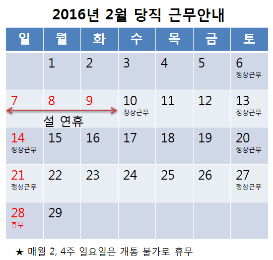 [2016³â 2¿ù ÁÖ¸» ¹× °øÈÞÀÏ ´çÁ÷±Ù¹« ¾È³»]