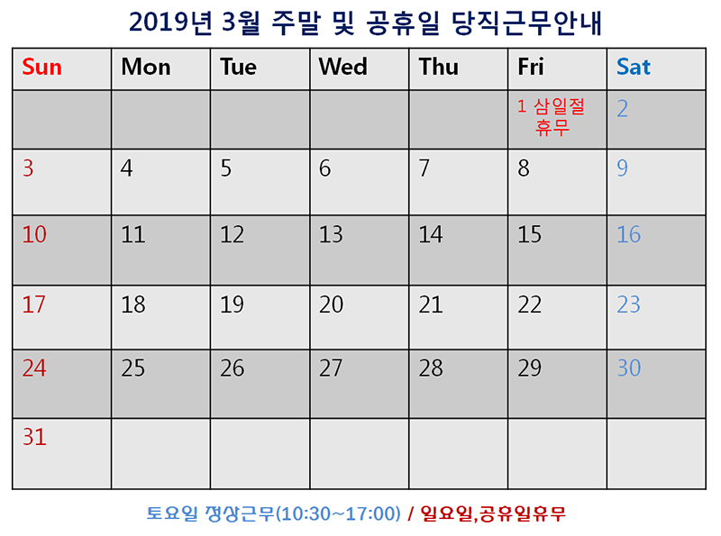 [2019³â 3¿ù ÁÖ¸» ¹× °øÈÞÀÏ ´çÁ÷±Ù¹« ¾È³»]