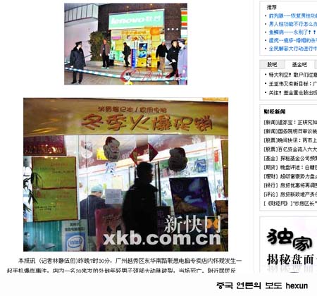 (»çÁø : ÈÞ´ëÆù Æø¹ß »ç°í°¡ ÀϾ Áß±¹ ±¤Àú¿ìÀÇ ÄÄÇ»ÅÍ °¡°Ô / ¾ð·Ð º¸µµ È­¸é)