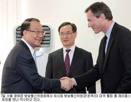 ÃÖ½ÃÁß ¹æ¼ÛÅë½ÅÀ§¿øÈ¸ À§¿øÀåÀº 7ÀÏ ±¤È¹® û»ç¿¡¼ Æú Á¦ÀÌÄß½º ȸÀå ÀÏÇàÀ» Á¢°ßÇß´Ù. ÀÌ ÀÚ¸®¿¡¼ ÃÖ À§¿øÀåÀº £¢Ä÷ÄÄÀÌ Çѱ¹ À̵¿Åë½Å»ê¾÷°ú »ó»ýÇÏ¸é¼ ¼¼°è 10´ë ¹ÝµµÃ¼ ±â¾÷¿¡ ÁøÀÔÇÑ °ÍÀº ÀÇ¹Ì ÀÖ´Â ÀÏ£¢À̶ó¸é¼ £¢Çѱ¹°úÀÇ Çù·Â°ü°è¸¦ ¹ÙÅÁÀ¸·Î ¼¼°è ÃÖ°í ¼öÁØÀÇ ±â¼ú·ÂÀ» º¸À¯ÇÑ Çѱ¹À̵¿Åë½Å °ü·Ã±â¾÷¿¡ Àû±ØÀûÀ¸·Î ÅõÀÚÇØ ´Þ¶ó£¢°í ¿äûÇß´Ù.