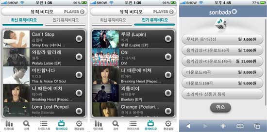 ¶ÇÇÑ ÇÚµåÆù ¼Ò¾×°áÁ¦ ¼­ºñ½º¸¦ Ãß°¡ÇØ ¼Ò¸®¹Ù´Ù ¾îÇÃÀ» ÅëÇØ À½¾Ç ÀÌ¿ë±ÇÀ» ¹Ù·Î ±¸ÀÔÇÒ ¼ö ÀÖµµ·Ï ÇßÀ¸¸ç, 3G ³×Æ®¿öÅ© ¼³Á¤À» °­È­ÇØ ½Ç½Ã°£ ½ºÆ®¸®¹Ö »ç¿ë ¸ðµå·Î ¼³Á¤Çϸé 3G »óÅ¿¡¼­ÀÇ À½¾Ç°ú ¹ÂÁ÷ºñµð¿À Àç»ýÀ» Á¦ÇÑÇØ ¿ä±ÝÀ» ¹ß»ý½ÃŰÁö ¾Ê´Â´Ù.