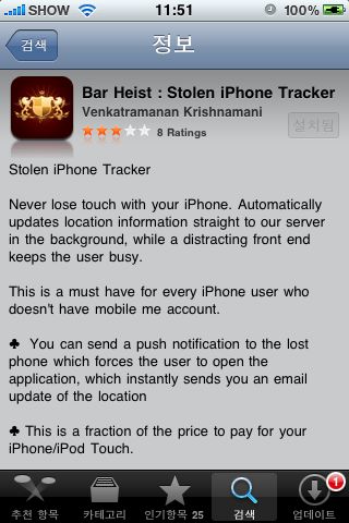 ³» ¾ÆÀÌÆùÀÌ ÇöÀç ¾îµð¿¡ ÀÖ´Â Áö¸¦ ¾Ë ¼ö ÀÖ´Ù¸é ã±â°¡ ÈξÀ ½¬¿ï °ÍÀÌ´Ù. ¿À´Ã ¼Ò°³ÇÏ·Á°í ÇÏ´Â ¾îÇÃÀÌ ¹Ù·Î ±×·± ¾îÇÃÀÌ´Ù. Bar Heist ¶ó´Â µµ³­ ¾ÆÀÌÆù ÃßÀû ¾îÇÃÀº 2.99´Þ·¯ÀÌ´Ù. ±×·±µ¥ ÀÌ ±â»ç¸¦ ¾²°í ÀÖ´Â 3¿ù 19ÀÏ ¿À´Ã ´çÀÏ¿¡´Â ¹«·á·Î Ç®·È´Ù. ¿À´Ã¸¸ ¹«·á ¾îÇÿ¡ ¿À¸¥ °ÍÀÌ´Ù.