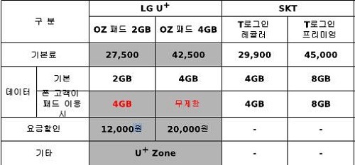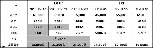 Â÷ÀÌ´Â ¿ä±ÝÀÌ´Ù. LG À¯Ç÷¯½º´Â SKT¿Í ºñ±³ÇØ Ãâ½Ã ½ÃÁ¡ÀÌ ´ÊÀº ´ë½Å, Àú·ÅÇÑ ¿ä±ÝÁ¦·Î ½ÂºÎ¸¦ °Ç´Ù´Â °èȹÀÌ´Ù. OZ ½º¸¶Æ® ¿ä±ÝÁ¦ÀÇ ¿ä±ÝÇÒÀÎÀ» ³ôÀ̰í, µ¥ÀÌÅÍ Àü¿ë ¿ä±ÝÁ¦¿¡µµ ¿ä±ÝÇÒÀÎÀ» Á¦°øÇØ °í°´ÀÇ ½Ç±¸¸Å°¡¸¦ ³·ÃçÁÖ°Ú´Ù´Â °ÍÀÌ´Ù.