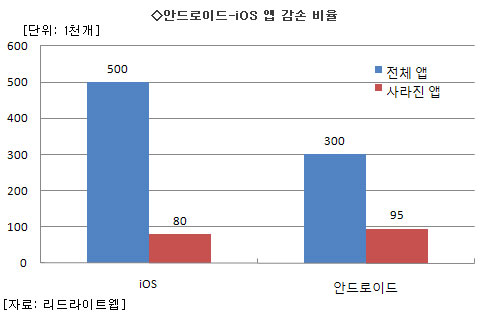 ¿ª½Ã °°Àº ÀÚ·á¿¡ µû¸£¸é ¾à 50¸¸ °³¿¡ ´ÞÇÏ´Â iOS¿ë ¾Û Áß 8¸¸ °³ °¡·®ÀÌ »ç¶óÁ³´Ù. ºñÀ²·Î µûÁö¸é ¾Èµå·ÎÀ̵å Áø¿µÀÇ Àý¹Ý µÇ´Â 16% Á¤µµ µÈ´Ù.