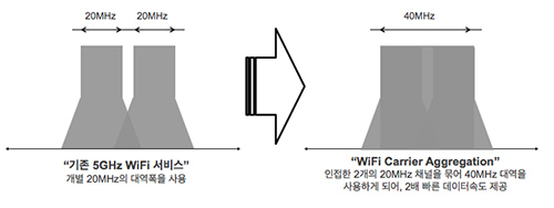 ¿ÍÀÌÆÄÀÌ Ã¤³Îº»µùÀº ¹»±î¿ä? ÇѸ¶µð·Î ¸»ÇÏÀÚ¸é 2°³ÀÇ ¿ÍÀÌÆÄÀÌ ½ÅÈ£¸¦ ÇϳªÃ³·³ ÇÕÃļ­ ¾²´Â ±â¼úÀÔ´Ï´Ù. ¾Õ¼­ ¾ê±âÇß´ø LTEÀÇ Ä³¸®¾î ¾î±×¸®°ÔÀ̼Ç(CA)¿Í ºñ½ÁÇÏ´Ù°í º¸¸é µË´Ï´Ù. ´Ù¸¸ ºÙÀÌ´Â 2°³ÀÇ ½ÅÈ£°¡ ´Ù¸¥ Á֯ļö°¡ ¾Æ´Ï¶ó ºñ½ÁÇÑ Á֯ļö´ëÀÇ ´Ù¸¥ ä³Î 2°³¸¦ ÀÕ´Â °Ì´Ï´Ù. CA¿Í ¸¶Âù°¡Áö·Î ÀÌ·ÐÀûÀ¸·Î´Â 2¹èÀÇ ¼Óµµ¸¦ ³À´Ï´Ù. KT°¡ ±× µ¿¾È ¡®¿ÍÀÌÆÄÀÌ Ä³¸®¾î ¾î±×¸®°ÔÀ̼ǡ¯À̶ó°í ºÒ·¶´ø ±â¼úÀÇ º»·¡ À̸§µµ ¹Ù·Î ä³Îº»µùÀÔ´Ï´Ù. CA¿Í °³³äÀûÀ¸·Î ºñ½ÁÇϱ⠶§¹®¿¡ ÀÌ·¸°Ô ºÒ·¶³ªº¾´Ï´Ù.