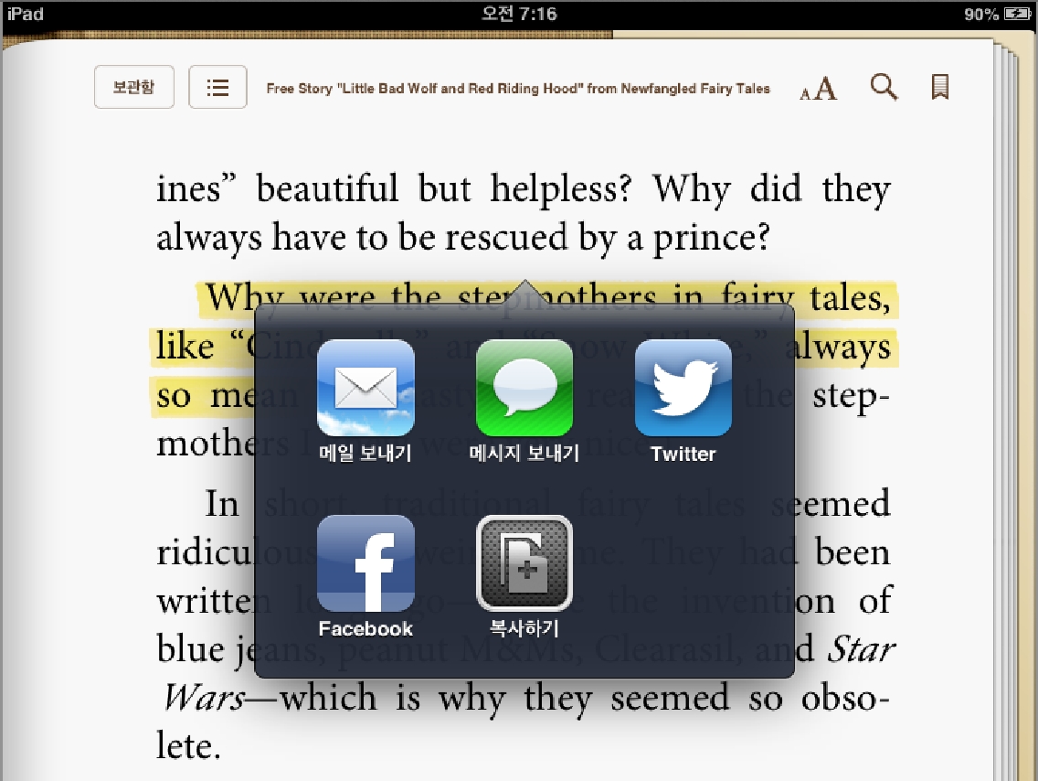 ¾ÖÇÃÀº ¾ÆÀÌÆÐµå ¹Ì´Ï¸¦ Ãâ½ÃÇÏ¸é¼ ¾ÆÀ̺Ͻº(ÀüÀÚÃ¥ ÇÁ·Î±×·¥)¸¦ ¾÷µ¥ÀÌÆ®ÇØ ¾Æ·¡·Î ¸·Èû¾øÀÌ ³»·Á°¥ ¼ö ÀÖ´Â ½ºÅ©·Ñ ±â´É°ú ÀüÀÚÃ¥ÀÇ Æ¯Á¤ ±¸ÀýÀ» Æ®À§Åͳª ÆäÀ̽ººÏ¿¡ ¿Ã·Á °øÀ¯ÇÏ´Â ±â´ÉÀ» Ãß°¡Çß½À´Ï´Ù. ½ºÅ©·Ñ ±â´ÉÀ» ÀÌ¿ëÇϸé ÁöÇÏö¿¡¼ ¾öÁö¼Õ°¡¶ô Çϳª·Î Ã¥ÀåÀ» ³Ñ±â¸ç ÀÐÀ» ¼ö ÀÖ½À´Ï´Ù. ¶Ç ¸¾¿¡ µå´Â ±ÍÀýÀÌ ³ªÅ¸³ª¸é ¹üÀ§¸¦ ÁöÁ¤ÇÑ ´ÙÀ½ ¡®°øÀ¯¡¯ ¹öưÀ» ´©¸£°í ÇѵΠ¸¶µð Ãß°¡ÇØ Æ®À§Åͳª ÆäÀ̽ººÏ¿¡ ¿Ã¸± ¼ö ÀÖ½À´Ï´Ù.