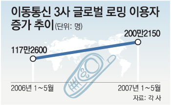 ¡¶¿Ü±¹¿¡ ³ª°¡¼­µµ À̵¿Åë½Å ¼­ºñ½º¸¦ ÀÌ¿ëÇÏ´Â ±Û·Î¹ú ·Î¹Ö »ç¿ëÀÚ°¡ Å©°Ô ´Ã°í ÀÖ´Ù. 19ÀÏ À̵¿Åë½Å¾÷°è¿¡ µû¸£¸é SKÅÚ·¹ÄÞ, KTF, LGÅÚ·¹ÄÞ À̵¿Åë½Å 3»çÀÇ ¿ÃÇØ 1¡­5¿ù ·Î¹Ö ÀÌ¿ëÀÚ°¡ 200¸¸2150¸íÀ¸·Î À۳⠰°Àº ±â°£º¸´Ù 70%°¡·® Áõ°¡Çß´Ù.¡·
