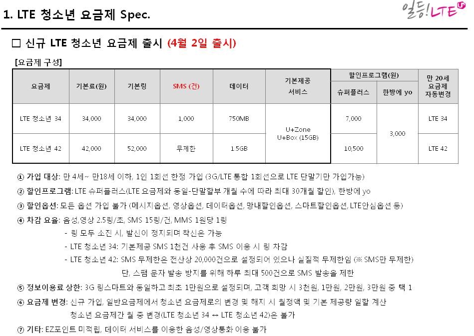 LGU+ LTE û¼Ò³â 34/42 ¿ä±ÝÁ¦ Ãâ½Ã ¾È³» µå¸³´Ï´Ù.