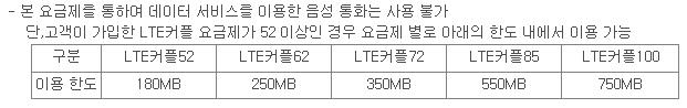 ¾ÊÀ» °æ¿ì´Â µ¿ÀÏÇÑ ±âº»·áÀÇ LTE ¿ä±ÝÁ¦·Î º¯°æµÊ. (¿¹:LTEÄ¿ÇÃ100 ¡æ LTE100)