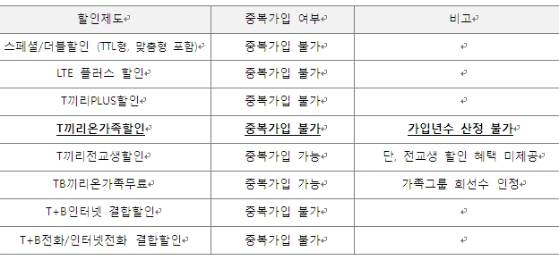 ¡Ý ½ºÆä¼È ¾àÁ¤ÇÒÀÎÁ¦µµ °¡ÀÔ °í°´ÀÌ LTE Ç÷¯½º ¾àÁ¤ÇÒÀÎÁ¦µµ·Î º¯°æÇÒ °æ¿ì, ½ºÆä¼È ¾àÁ¤ÀÇ ÇØÁö ÇÒÀιÝȯ±Ý ºÎ°ú À¯¿¹ (¾àÁ¤ ½Â°è ÈÄ, ½ºÆä¼È ¾àÁ¤ ÀÜ¿©±â°£ µ¿¾È LTE Ç÷¯½º ¾àÁ¤ ÀÌ¿ë ½Ã ÇÒÀιÝȯ±Ý ¼Ò¸ê) - ½ºÆä¼È ¾àÁ¤ 24°³¿ù ¾àÁ¤ °í°´ÀÌ 18°³¿ù ÀÌ¿ë ÈÄ LTE·Î º¯°æ ½Ã, 6°³¿ù°£ LTE Ç÷¯½º ¾àÁ¤ Ãß°¡ »ç¿ë½Ã ½ºÆä¼È ¾àÁ¤ÀÇ ÇØÁö ÇÒÀιÝȯ±ÝÀº ¼Ò¸ê - ¾àÁ¤ÇÒÀÎÁ¦µµ ½Â°è ½Ã °¡ÀÔ °¡´É ¾àÁ¤ÇÒÀÎÁ¦µµ´Â ÀÌÀü ÇÒÀÎ Á¦µµÀÇ ¾àÁ¤ ±â°£¿¡ µû¶ó ´Ù¸§ ![]() ¡Ø SKT ¾àÁ¤ÇÒÀÎÁ¦µµ °øÅë »çÇ× [°¡ÀÔ Á¶°Ç]¡°È¸¼± & ¿ä±ÝÁ¦¸¦ ¾àÁ¤ ±â°£ µ¿¾È ÀÌ¿ë ½Ã °¡ÀÔ °¡´É¡± - ´Ü¸» ÇҺΠ±¸¸Å(½Å±Ô/±âº¯) ¿©ºÎ, TÇÒºÎÁö¿ø or T±âº»¾àÁ¤ °¡ÀÔ ¿©ºÎ ¸ðµÎ »ó°ü ¾øÀ½ - °¡ÀÔ °¡´É ´Ü¸» : ÇÇóÆù, ½º¸¶Æ®Æù - °¡ÀÔ ºÒ°¡ ´Ü¸» : PDA, ¸ðµ©, Ư¼ö´Ü¸», ¼±ºÒ, ÅÃ½ÃÆù µî [ÇÒÀÎ ´ë»óÀÚ ¼±Á¤] - ¾àÁ¤ÇÒÀÎÁ¦µµ ¡®¿ù¸»¡¯ ±îÁö À¯Áö ½Ã ÇÒÀÎ ÇýÅà Á¦°ø ´Ü, ȸ¼±ÀÇ ÇØÁö ¹× ¾àÁ¤ ½Â°è½Ã¿¡´Â ó¸® ´ç¿ù ÇÒÀξ×Àº ÀÏÇÒ °è»êÇÏ¿© Áö±Þ ![]() [¿ä±Ý¾àÁ¤ÇÒÀÎÁ¦µµ °¡ÀÔ °í°´ÀÇ ¿ù 1ȸ ÀÌ»ó ¿ä±ÝÁ¦ º¯°æ Á¦ÇÑ °È] - ¿ä±Ý¾àÁ¤ÇÒÀÎÁ¦µµ °¡ÀÔ °í°´Àº ¡®¿ù 1ȸ ÀÌ»ó ¿ä±ÝÁ¦ º¯°æ ±ÇÇÑ¡¯ À¸·Î °Á¦ ¿ä±ÝÁ¦ º¯°æ ºÒ°¡. ´Ü, ¿ä±ÝÁ¦ º¯°æ ´çÀÏ¿¡ ÇÑÇØ 1ȸ ÀÌ»ó º¯°æ °¡´É (ÇöÇà°ú µ¿ÀÏ) [ÇÒÀÎÁ¦µµ °£ Áߺ¹ °¡ÀÔ Á¶°Ç] - Áߺ¹ °¡ÀÔ ºÒ°¡´ÉÇÑ ÇÒÀÎÁ¦µµ ÀÌ¿ë °í°´ÀÌ ¡®¿ä±Ý¾àÁ¤ ÇÒÀÎÁ¦µµ¡¯ °¡ÀÔ ½Åû ½Ã, ±âÁ¸ ÇÒÀÎÁ¦µµÀÇ ¼± ÇØÁö ÈÄ °¡ÀÔ Ã³¸® ÇÊ¿ä ![]() - ¾àÁ¤ÇÒÀÎÁ¦µµ °¡ÀÔ ±â°£ Áß ·¹Àκ¸¿ì Æ÷ÀÎÆ® ¹× Åõ°ÔÀû Æ÷ÀÎÆ® Àû¸³ ºÒ°¡ - ¾àÁ¤ÇÒÀÎÁ¦µµ °¡ÀÔ ±â°£Àº ¿Â°¡Á·ÇÒÀÎ ¹× Àå±â°¡ÀÔÇÒÀÎÀÇ °¡ÀÔ³â¼ö ¹Ì»êÁ¤ ¿¹) ½ºÆä¼È ¾àÁ¤ 24°³¿ù ÀÌ¿ë °í°´ÀÌ ÇâÈÄ Àå±â°¡ÀÔÇÒÀÎ ´ë»óÀÚ·Î ¼±Á¤µÉ °æ¿ì, ¾àÁ¤ ÀÌ¿ë±â°£(24°³¿ù)Àº Á¦¿ÜÇϰí Àå±âÇÒÀÎ Á¦°øÀ» À§ÇÑ °¡ÀÔ³â¼ö »êÁ¤ [º¹ÁöÇÒÀÎ Àû¿ë ¼ø¼] ±âÁ¸ ÇÒÀÎÁ¦µµ(½ºÆä¼È/´õºí/LTEÇ÷¯½º)¿Í µ¿ÀÏ ¼ø¼ & Rule Àû¿ë - Àå¾ÖÀÎ & ±¹°¡À¯°øÀÚ : ¾àÁ¤ÇÒÀÎÁ¦µµ Àû¿ë ÈÄ º¹ÁöÇÒÀÎ Àû¿ë - ±âÃÊ»ýȰ¼ö±ÞÀÚ & Â÷»óÀ§ : º¹ÁöÇÒÀÎ Àû¿ë ÈÄ ¾àÁ¤ÇÒÀÎÁ¦µµ Àû¿ë °¡.¾àÁ¤ ±â°£ ¹× ÇýÅà ¼Ò±Þ Àû¿ë [¾àÁ¤ ½ÃÀÛÀÏ ¹× ÃÑ ¾àÁ¤ ±â°£] - ÃÑ ¾àÁ¤ ±â°£Àº, ¾àÁ¤ ½ÃÀÛÀϷκÎÅÍ ÀÏÇÒÇÏ¿© »êÁ¤ [1³â ¾àÁ¤] 365ÀÏ °£ / [2³â ¾àÁ¤] 730ÀÏ °£ [¾àÁ¤ ±â°£ ¸¸·á ½Ã ÀÚµ¿ ÇØÁö] - ¾àÁ¤ ±â°£ ¸¸·á½Ã, ¸¸·á ÈÄ ÀÍ¿ù 1ÀÏ¿¡ ÀÚµ¿ ÇØÁö ¿¹. 5¿ù 4ÀÏÀÌ ¾àÁ¤ ¸¸·áÀÏÀÎ °æ¿ì, 6¿ù 1ÀÏ 0½Ã¿¡ ÀÚµ¿ÇØÁö |