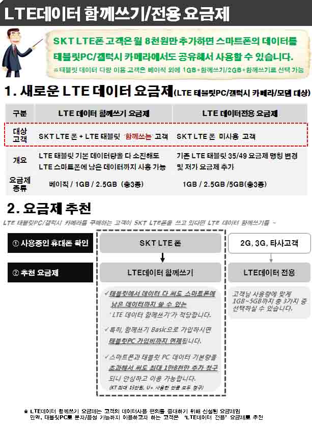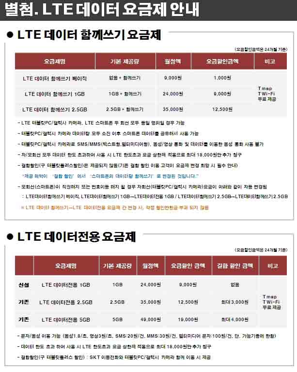 2. LTEµ¥ÀÌÅÍ Àü¿ë ¿ä±ÝÁ¦ : ±âÁ¸ÀÇ NEW LTE ÅÂºí¸´ ¿ä±ÝÁ¦´Â °¡ÀÔ ÁߴܵǸç, LTE µ¥ÀÌÅÍ Àü¿ë ¿ä±ÝÁ¦·Î ÅëÇյǸç, LTE ´Ü¸»¿¡ 1GB µ¥ÀÌÅÍ ¿ä±ÝÁ¦ Ãß°¡ ½Å¼³