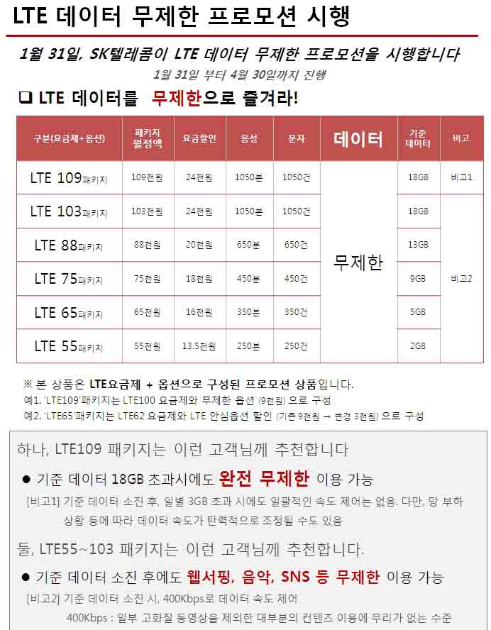SKT LTE¹«Á¦ÇÑ ¿ä±ÝÁ¦ Ãâ½Ã ¾È³» µå¸³´Ï´Ù.