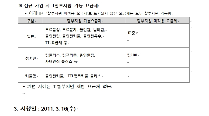 Á¦¸ñ ¡æ SKT ¡°TÇÒºÎÁ¦µµ º¯°æ¡± ¾È³» ¹× Q&A - 2011³â 3¿ù16ÀÏ