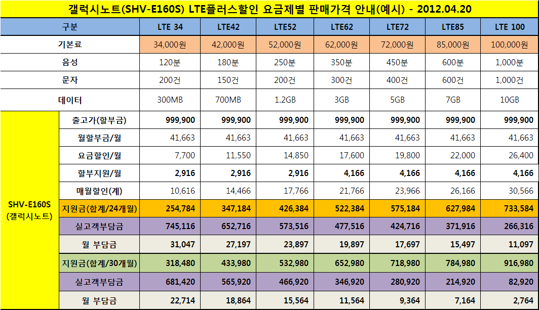 ¡Ø LTE ½º¸¶Æ®Æù ¿ä±ÝÁ¦ : LTE 34/42/52/62/72/85/100 ¿ä±ÝÁ¦